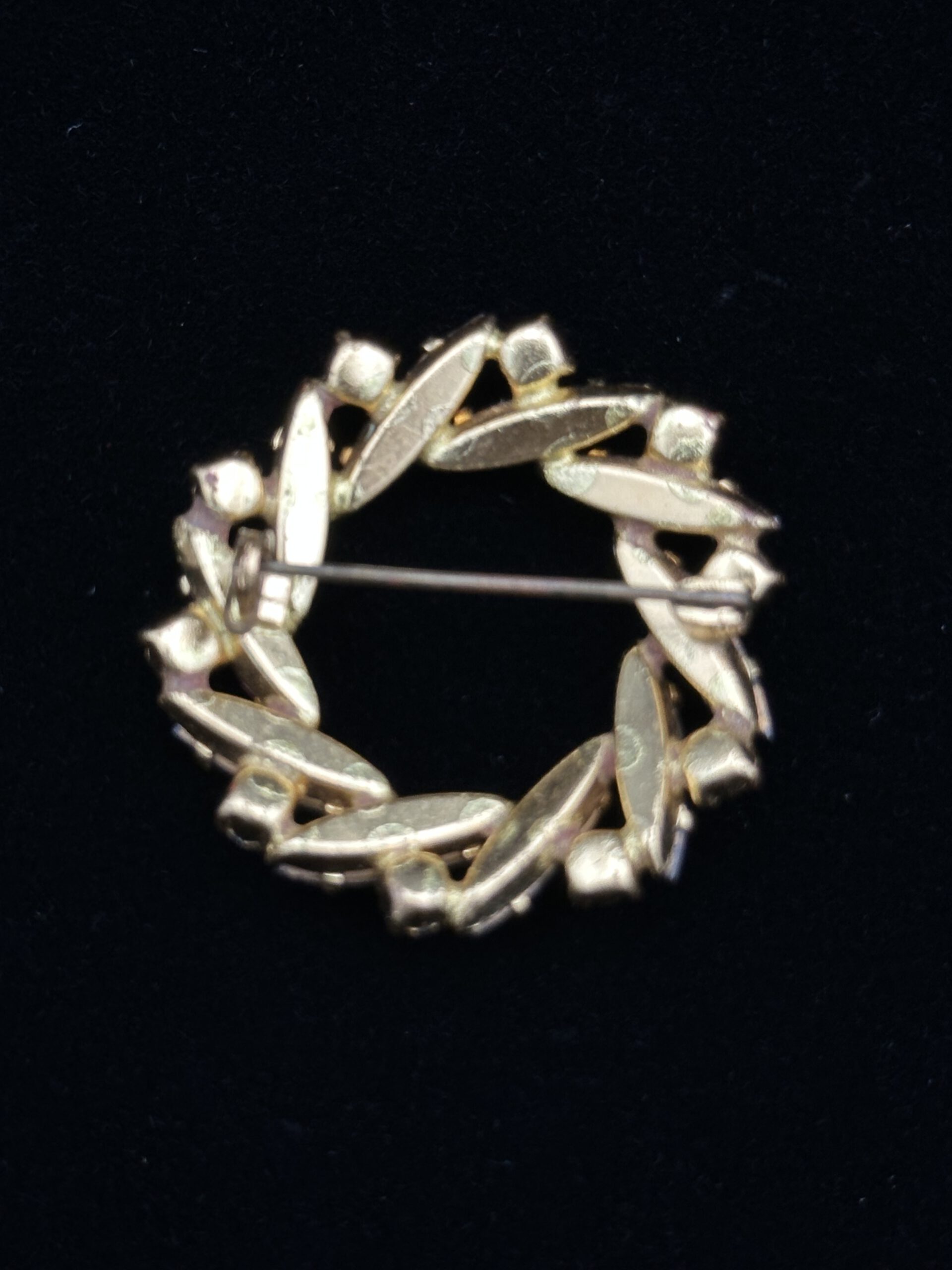 Diese runde Vintage-Brosche besticht durch ihr lebendiges Farbspiel aus funkelnden Magenta- und Grüntönen. Ein strahlender Blickfang, der Eleganz mit einem Hauch von Exotik verbindet.