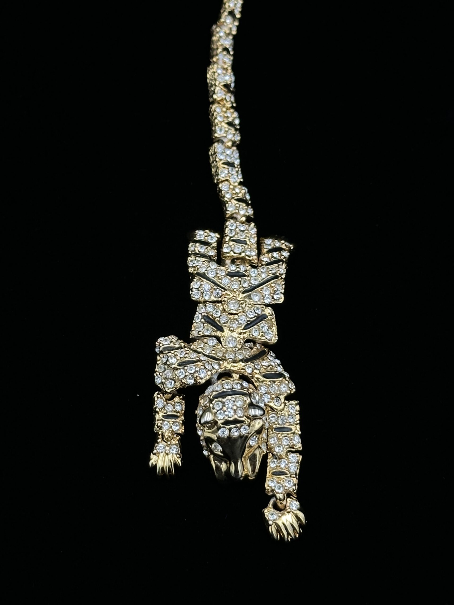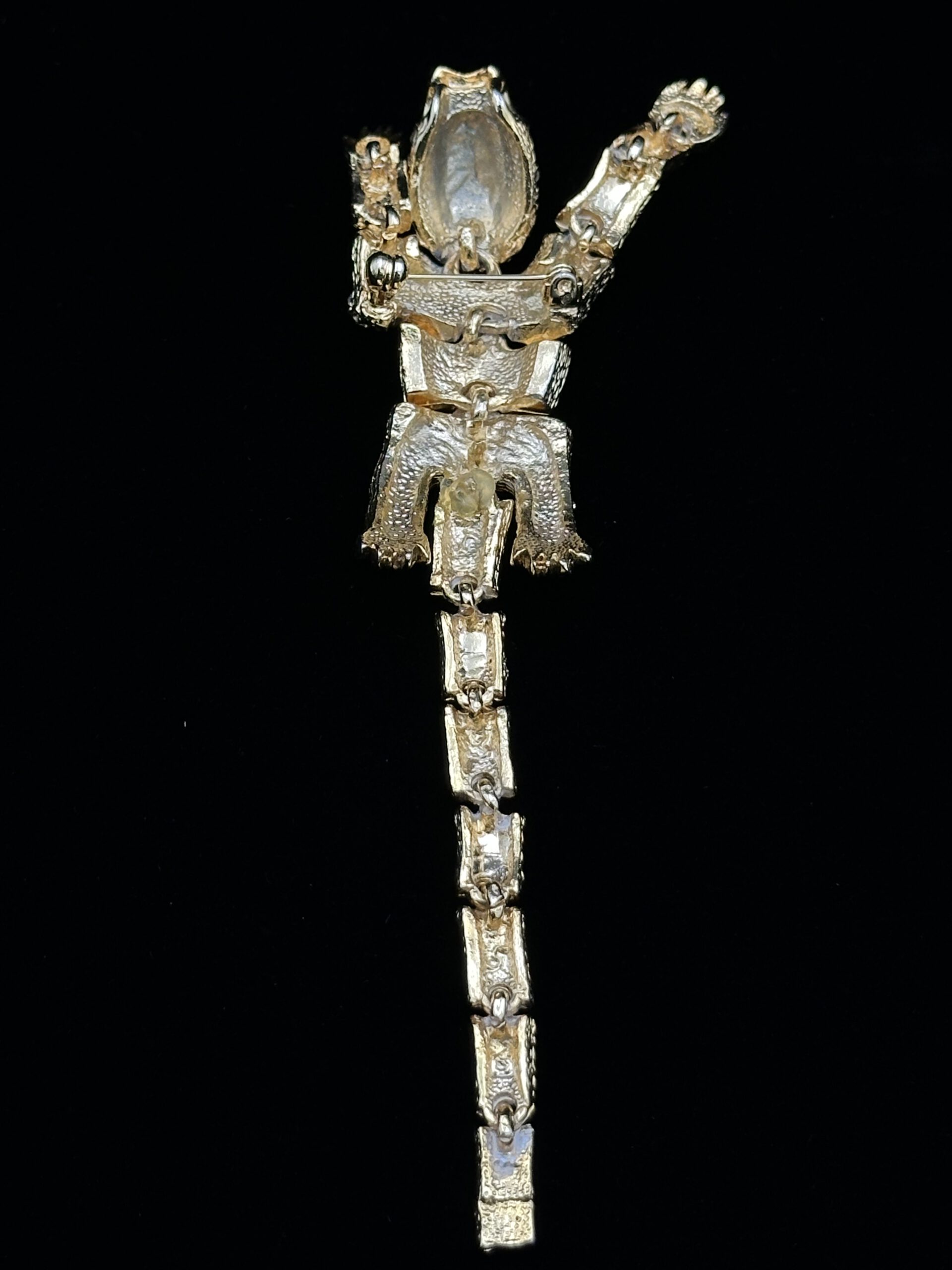 Diese detailreiche Vintage-Brosche zeigt einen majestätischen Tiger in warmem Goldton, dessen Körper beweglich gestaltet ist. Ein außergewöhnliches Schmuckstück, das Stärke, Eleganz und spielerische Raffinesse vereint.