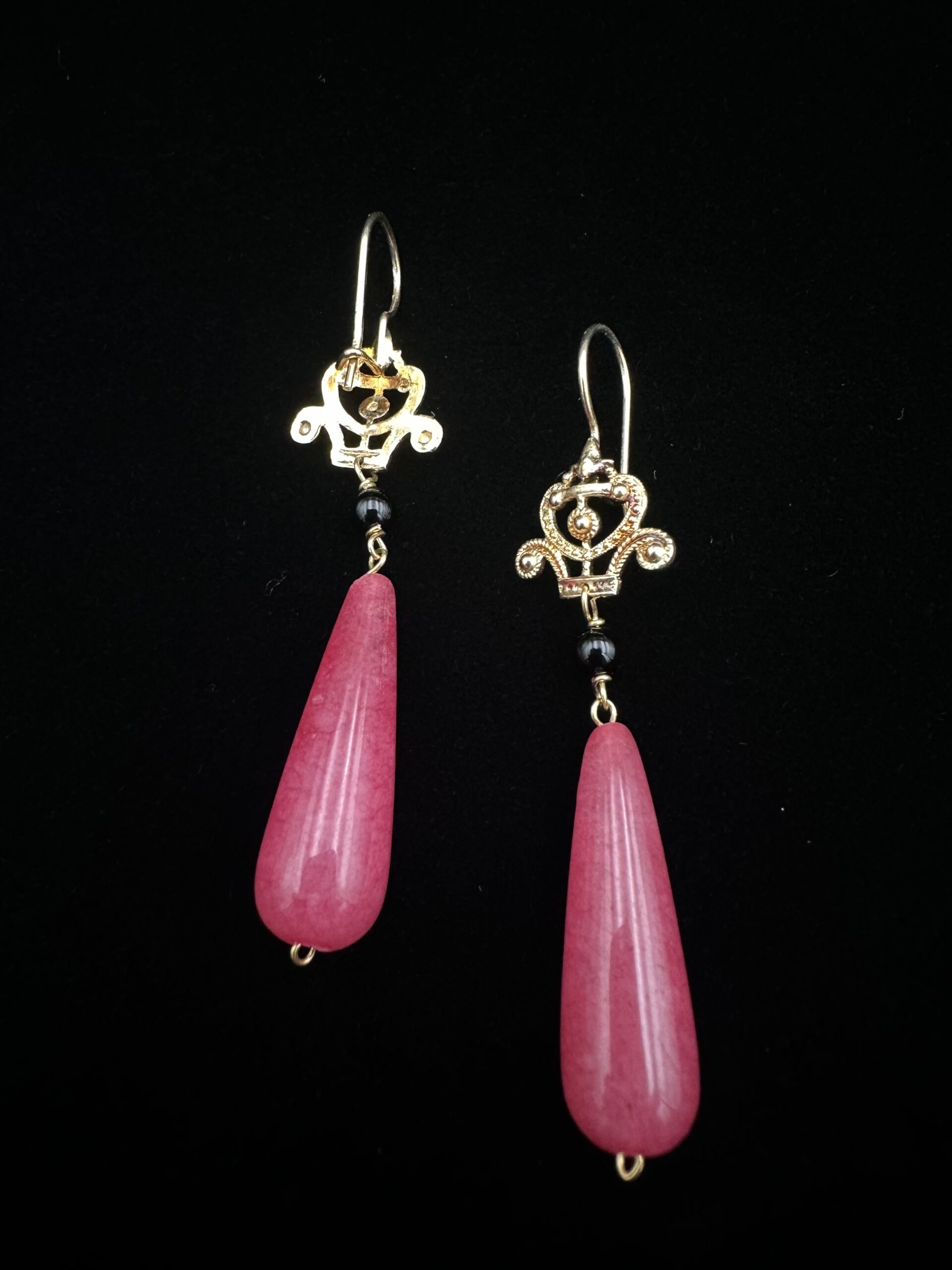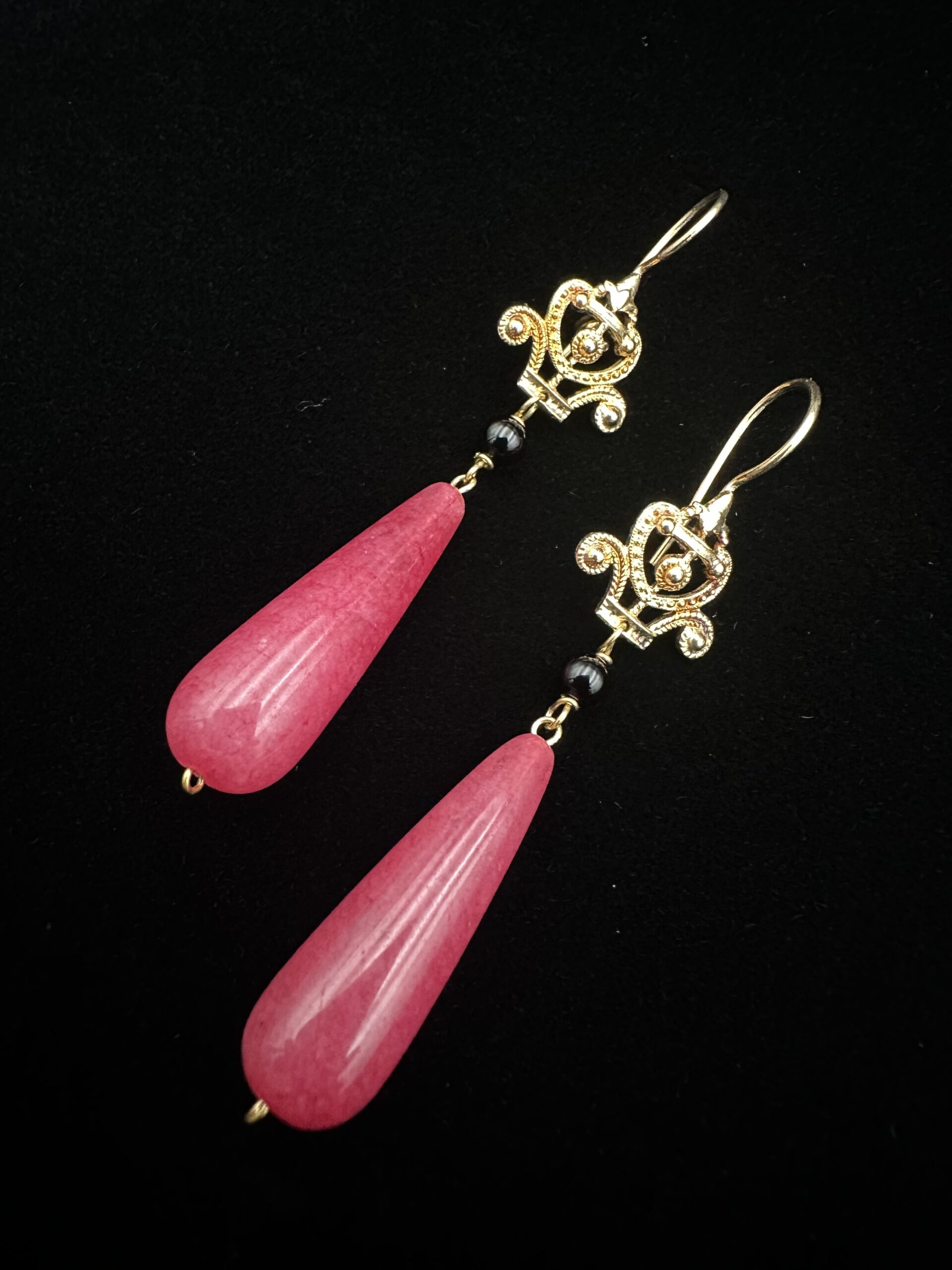 Diese eleganten, tropfenförmigen Ohrringe aus himbeerfarbenem, schimmerndem Kirschquarz setzen einen sanften, aber wirkungsvollen Farbakzent. Der filigran gearbeitete, vergoldete Stecker aus Silber 925 verleiht dem Design eine edle Leichtigkeit und rundet das feminine Gesamtbild stilvoll ab.
