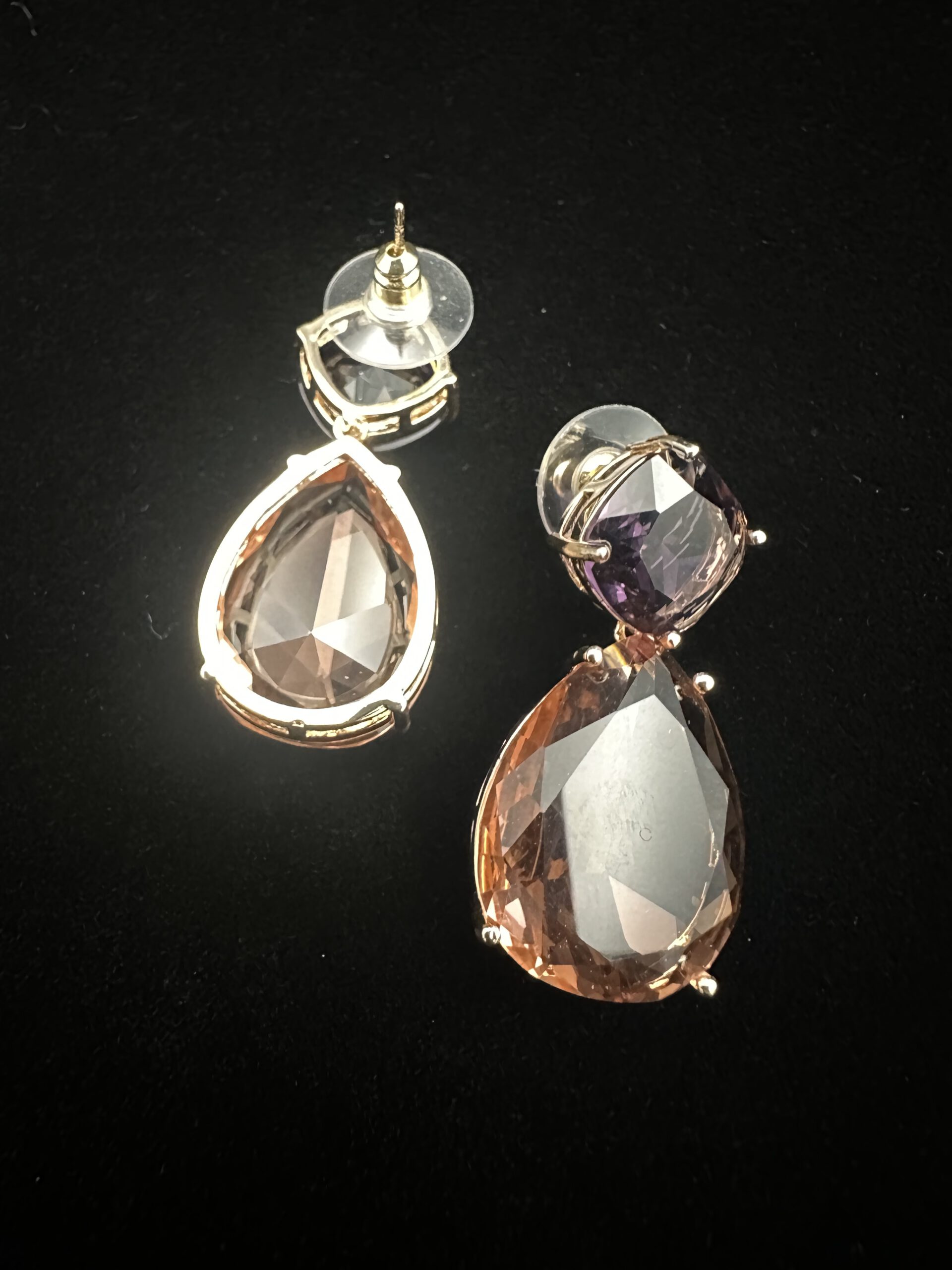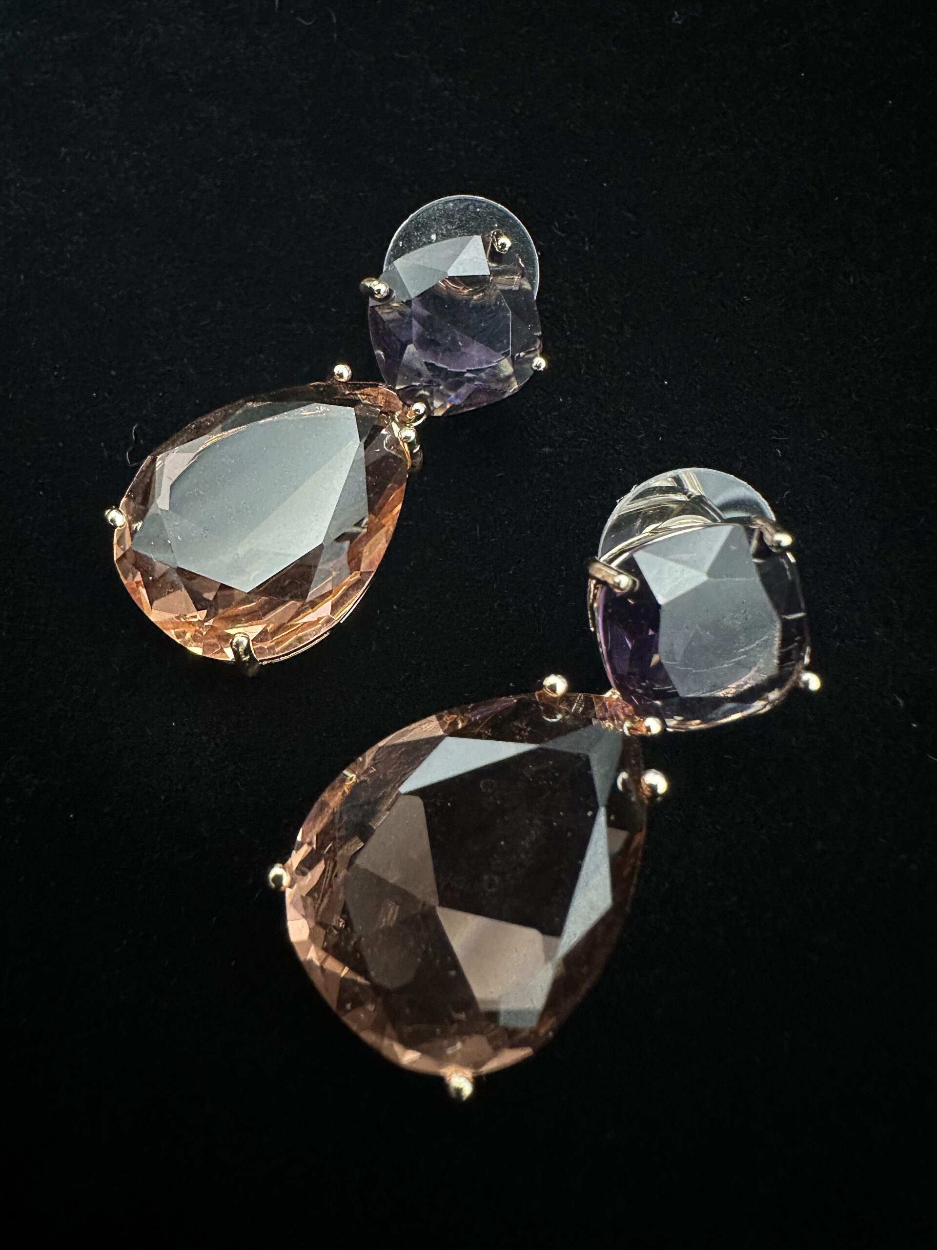 Diese wunderschönen Ohrringe vereinen einen honigfarbenen, tropfenförmigen Anhänger mit einem zarten lilafarbenen Steckerteil. Das warme Farbspiel schafft einen harmonischen, femininen Look und setzt gleichzeitig einen eleganten, modernen Akzent.