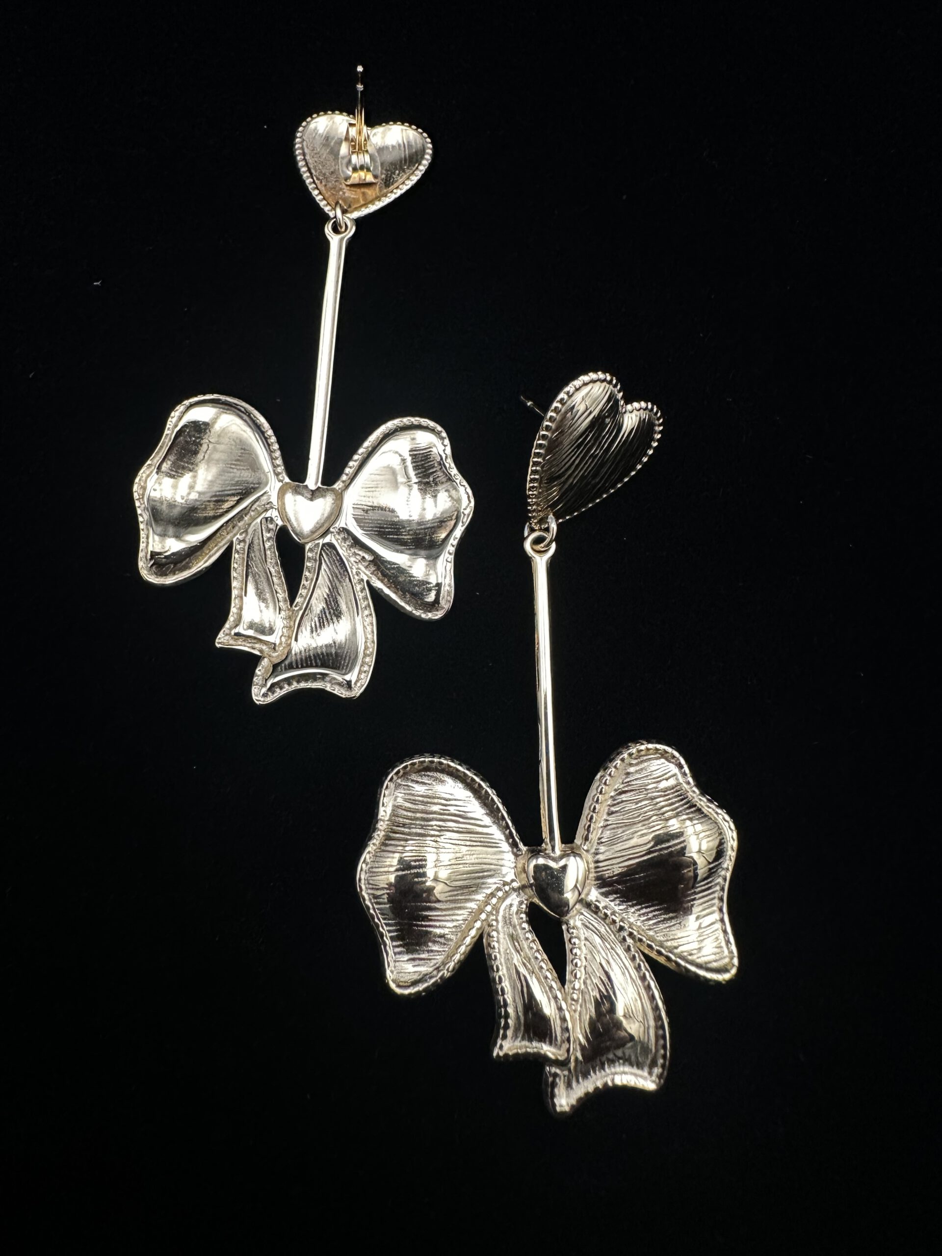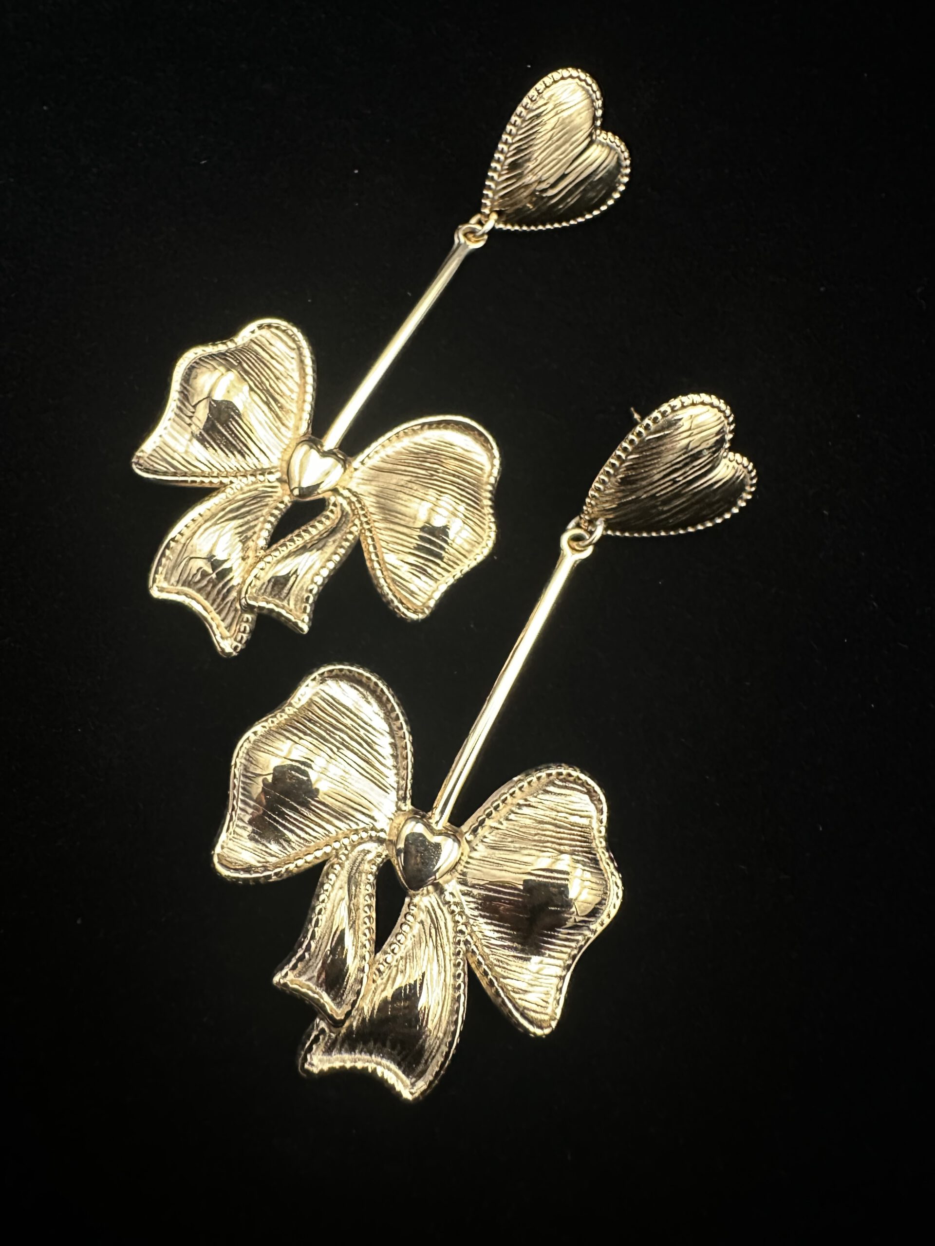 Diese liebevoll gestalteten Ohrhänger kombinieren einen zarten Herz-Stecker mit eleganten, goldfarbenen Schleifen. Das Design wirkt feminin, warm und verspielt – ein kleines Statement, das jedem Look einen Hauch romantischer Eleganz verleiht. Perfekt für alle, die feine Details und besondere Akzente schätzen.