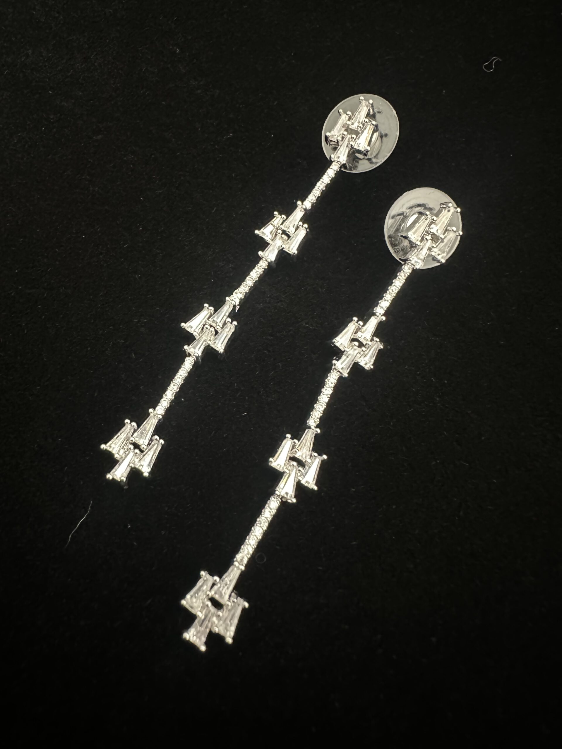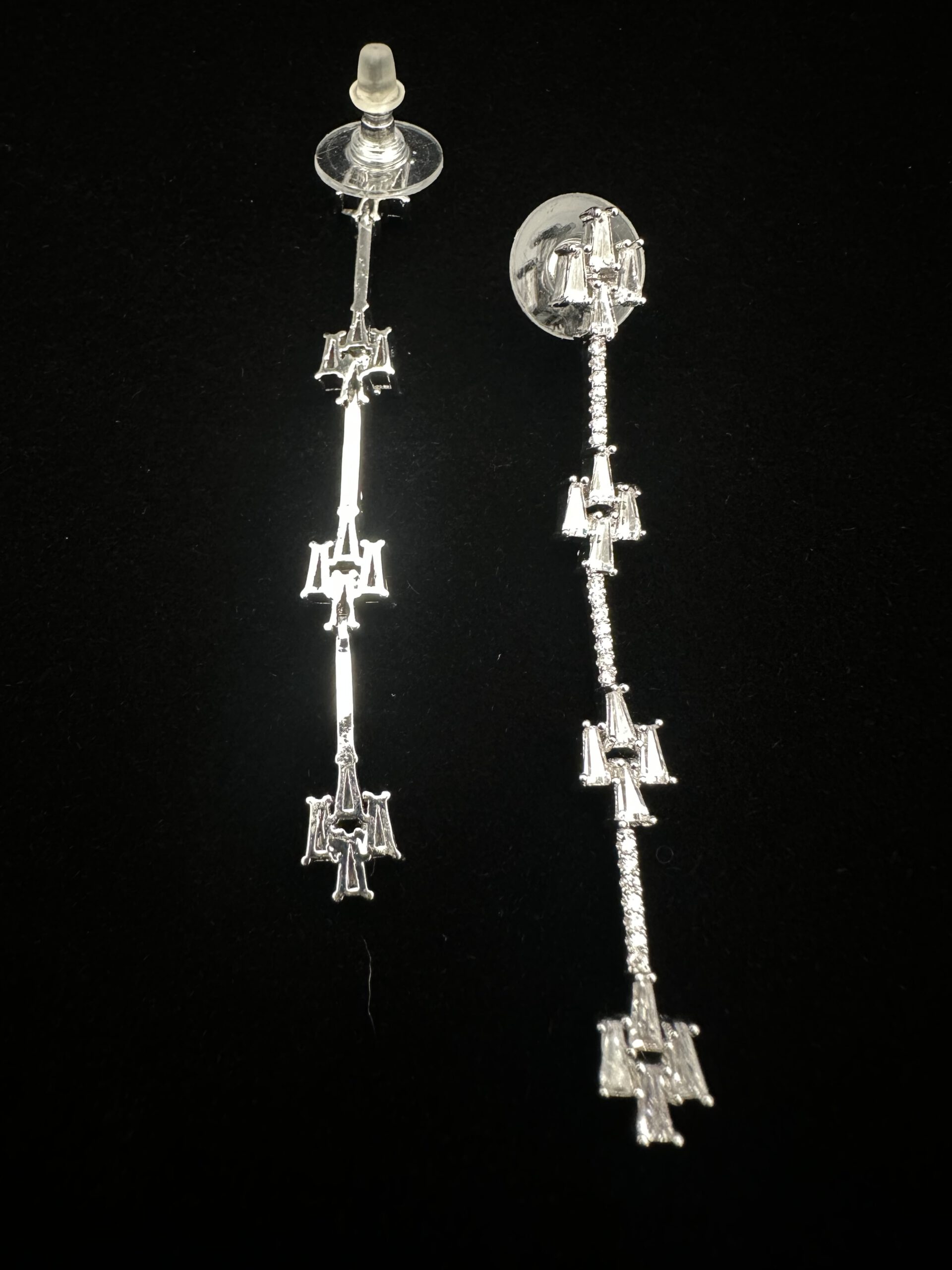 Diese eleganten, lang fallenden Ohrringe greifen die klaren Linien und geometrischen Formen des Art Déco auf. Fein gesetzte Strasssteine verleihen ihnen ein stilvolles Funkeln und unterstreichen den glamourösen Charakter des Designs. Ein edles Accessoire für alle, die zeitlose Eleganz mit einem Hauch Vintage-Flair lieben.