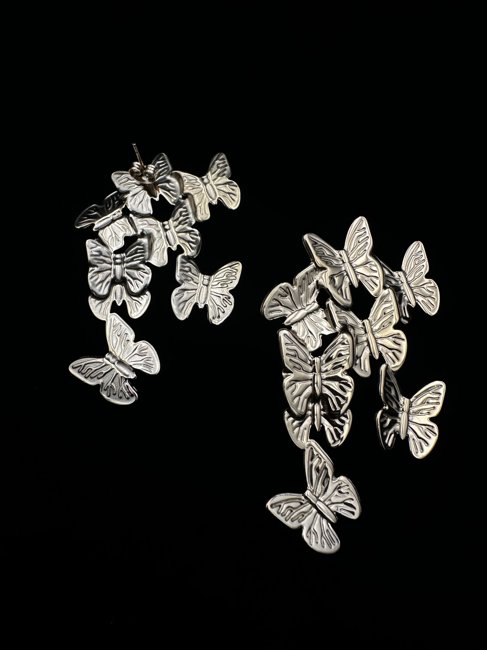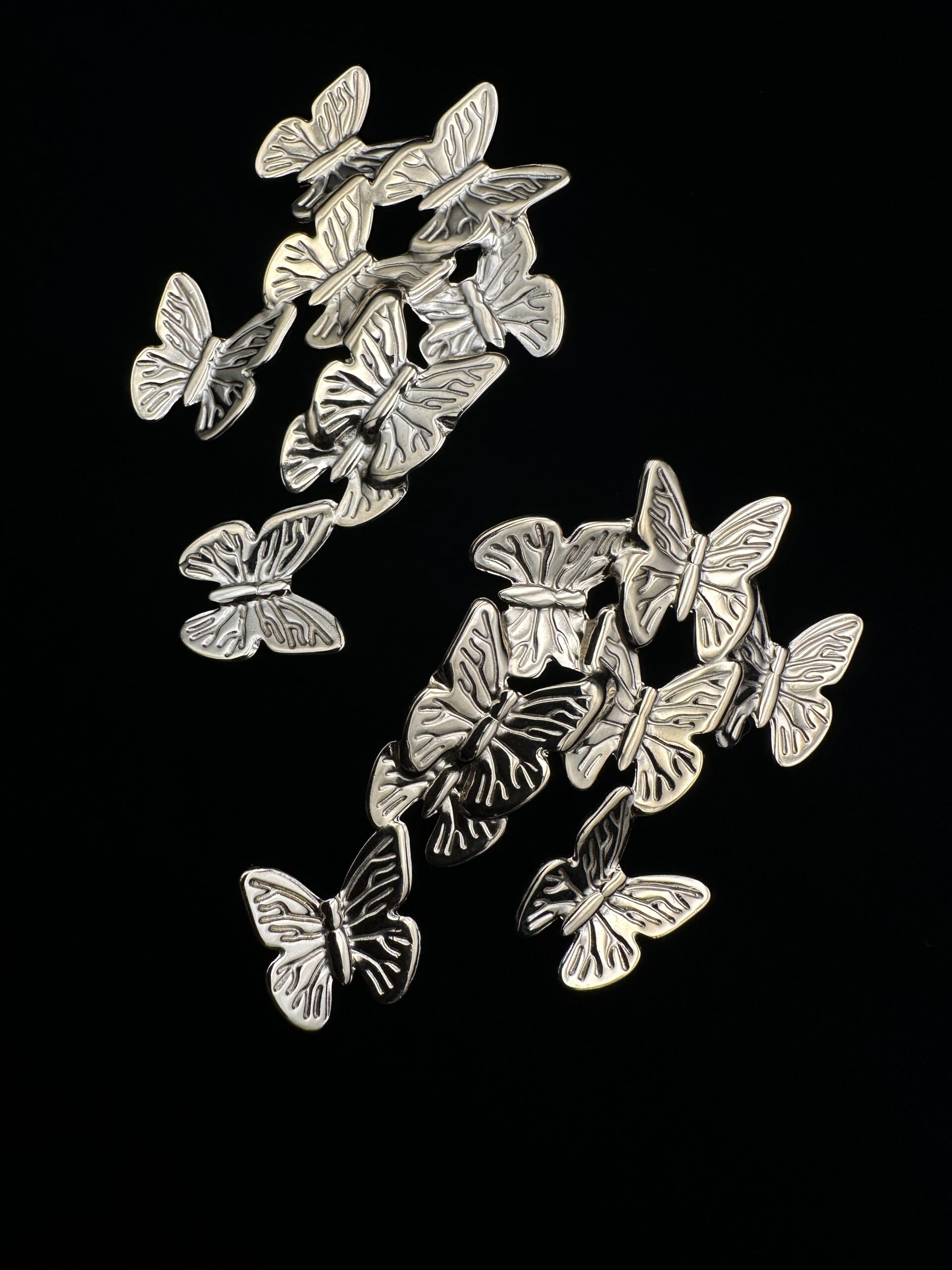 Diese zauberhaften Ohrringe zeigen einen eleganten Reigen aus filigranen Schmetterlingen in warm schimmerndem Gold. Leicht und verspielt bringen sie Bewegung und Leichtigkeit in jeden Look – ein feminines Accessoire für alle, die natürliche Schönheit und zarte Eleganz lieben.
