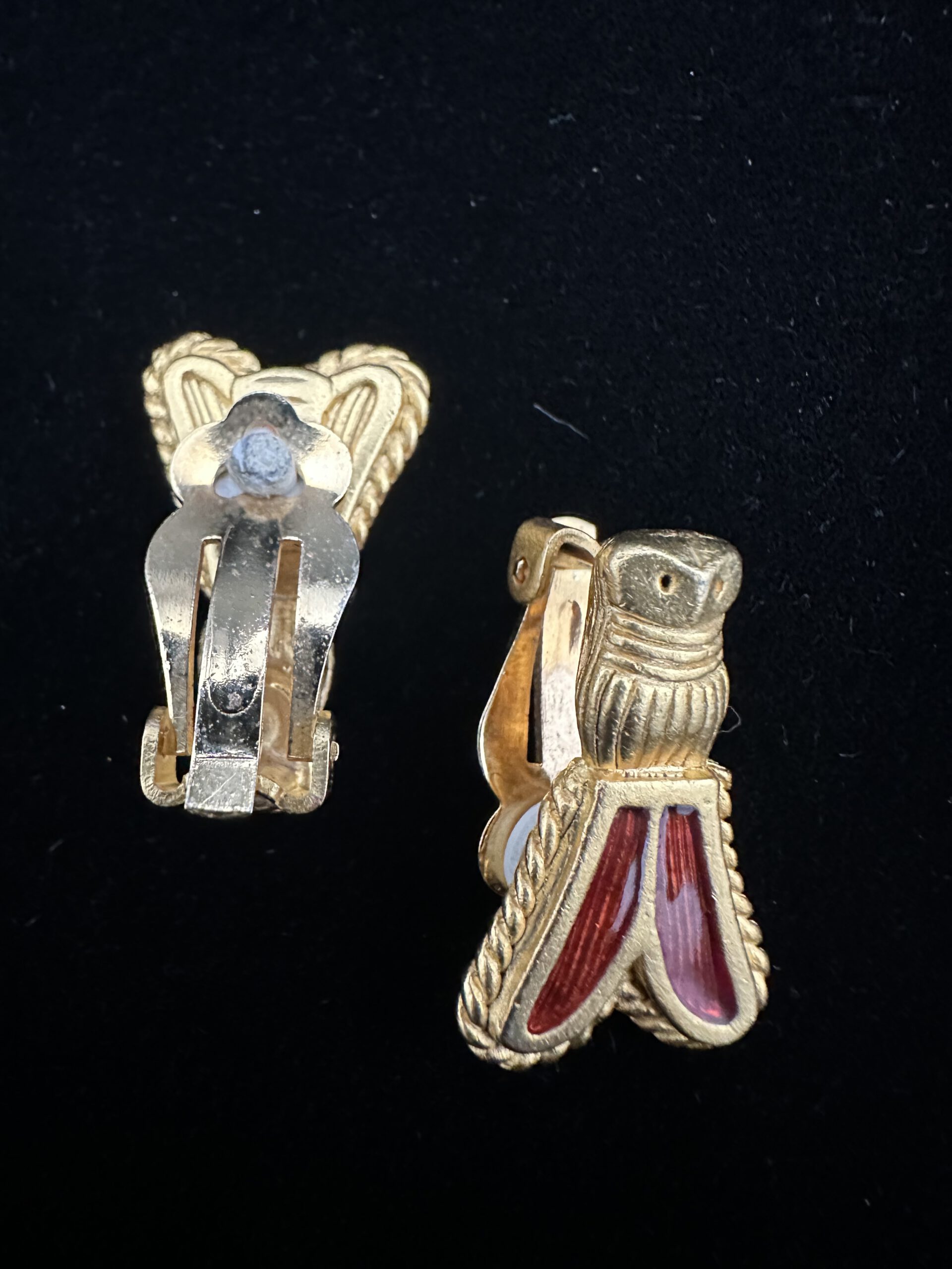 Hier ist eine Produktbeschreibung für die außergewöhnlichen, goldfarbenen Vintage Ohrclips in Form einer kleinen Zikade: