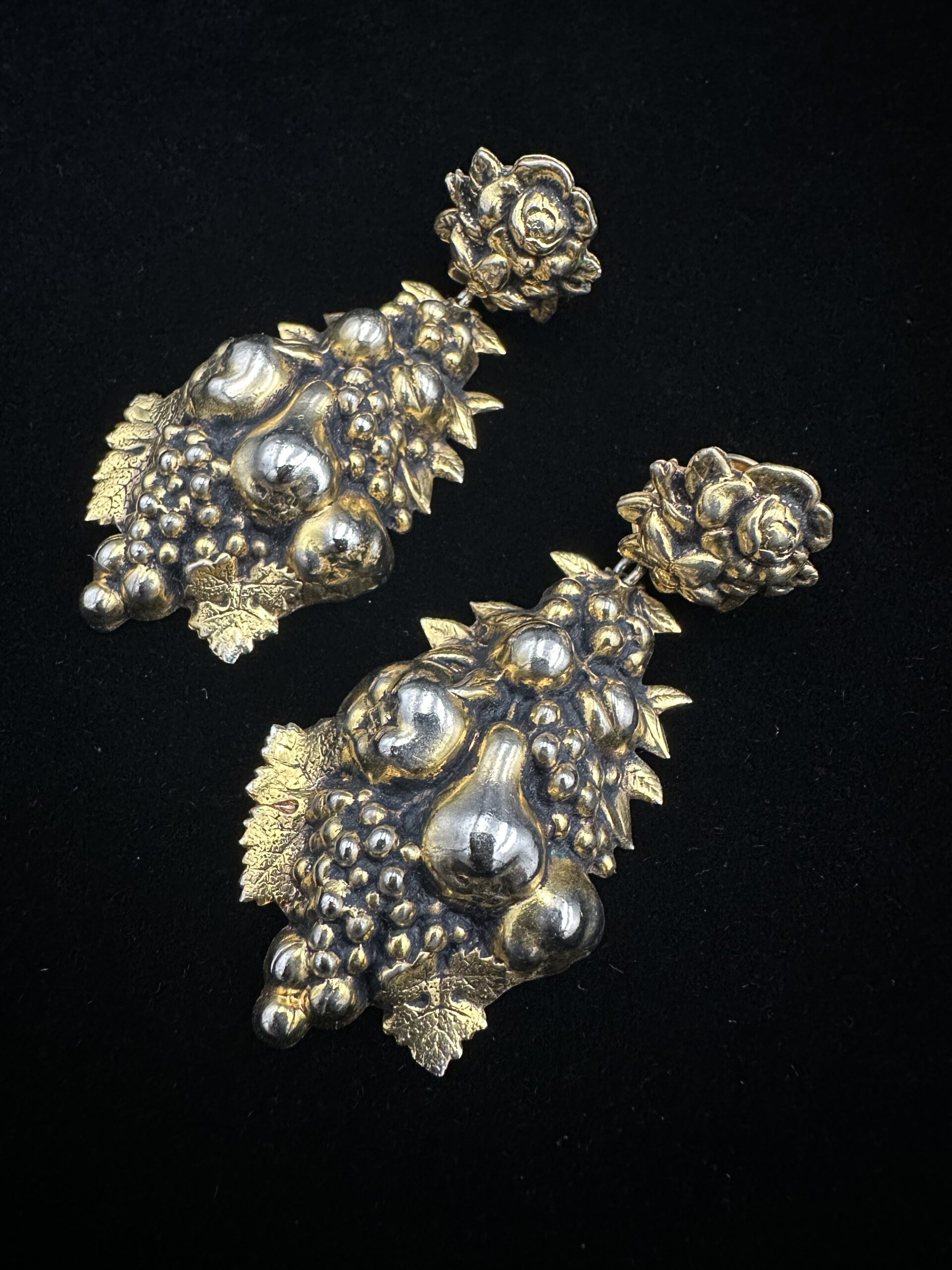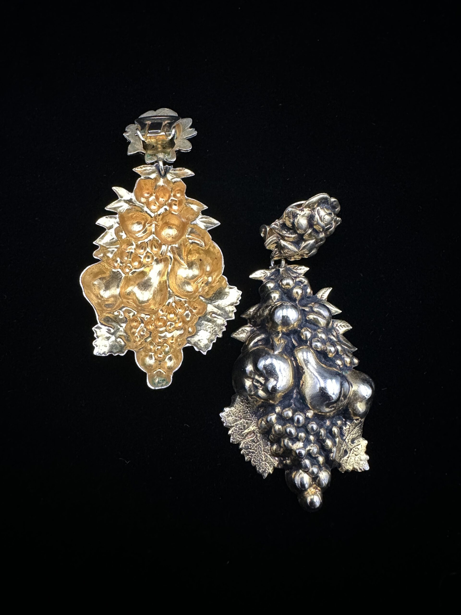 Diese goldfarbenen Vintage-Ohrclips bestechen durch ein verspieltes, detailreiches Fruchtbouquet als Anhänger: Liebevoll gestaltete Mini-Früchte fügen sich zu einem charmanten Arrangement zusammen und verleihen den Clips eine lebendige, skulpturale Note. Die warmen Goldtöne und die kunstvolle Vintage-Ästhetik machen die Ohrclips zu besonderen Statement-Stücken, die jedem Look einen eleganten, ausdrucksstarken Akzent verleihen.