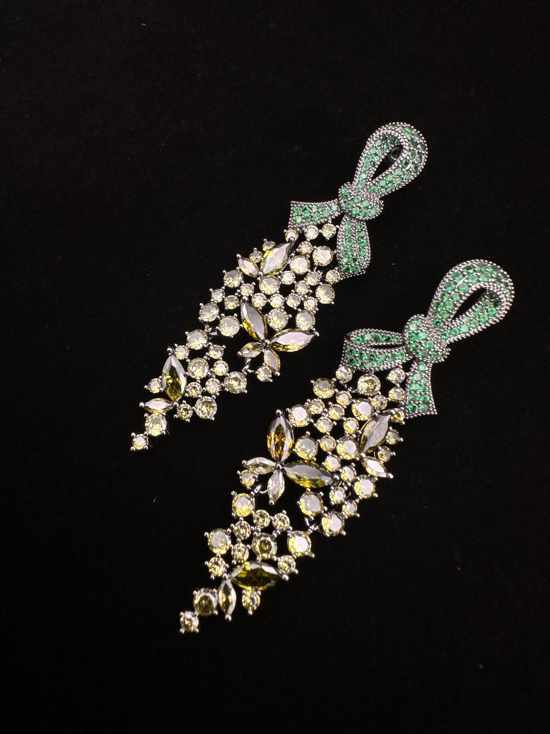 Diese wunderschönen Ohrringe begeistern mit einem floralen Design und einer eleganten grünen Schleifenoptik. Die verspielte Gestaltung verleiht dem Schmuckstück eine feminine und besondere Ausstrahlung. Ein charmantes Modeschmuck-Accessoire, das jedem Outfit einen frischen und stilvollen Akzent verleiht.