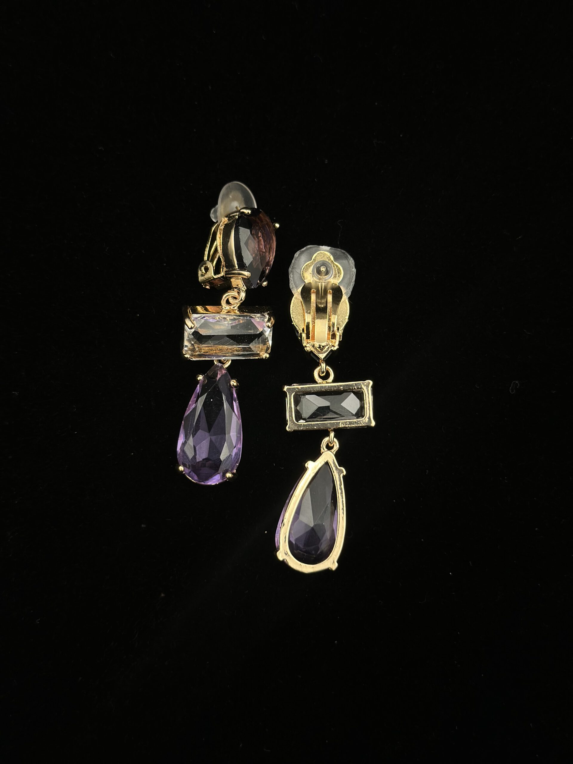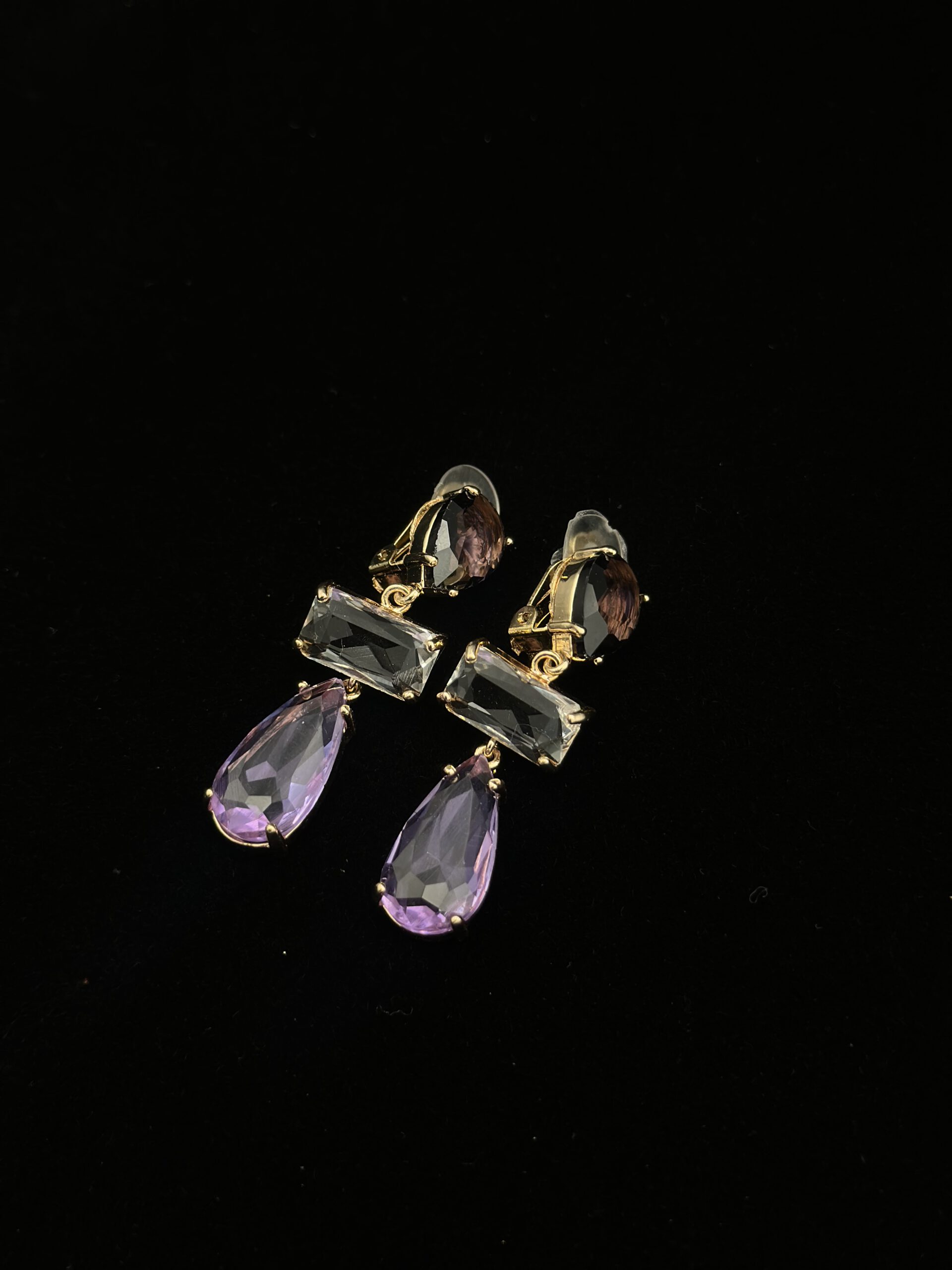 Diese funkelnden violetten Ohrclips überzeugen durch ihr elegantes Design und ihre strahlende Farbwirkung. Die Ohrclips bestehen aus drei kunstvoll angeordneten Steinen in unterschiedlichen Tönen, die gemeinsam ein harmonisches und edles Gesamtbild ergeben. Durch ihre facettenreiche Gestaltung setzen sie stilvolle, glamouröse Akzente und eignen sich perfekt als Highlight für besondere Anlässe oder als edles Detail im Alltag.