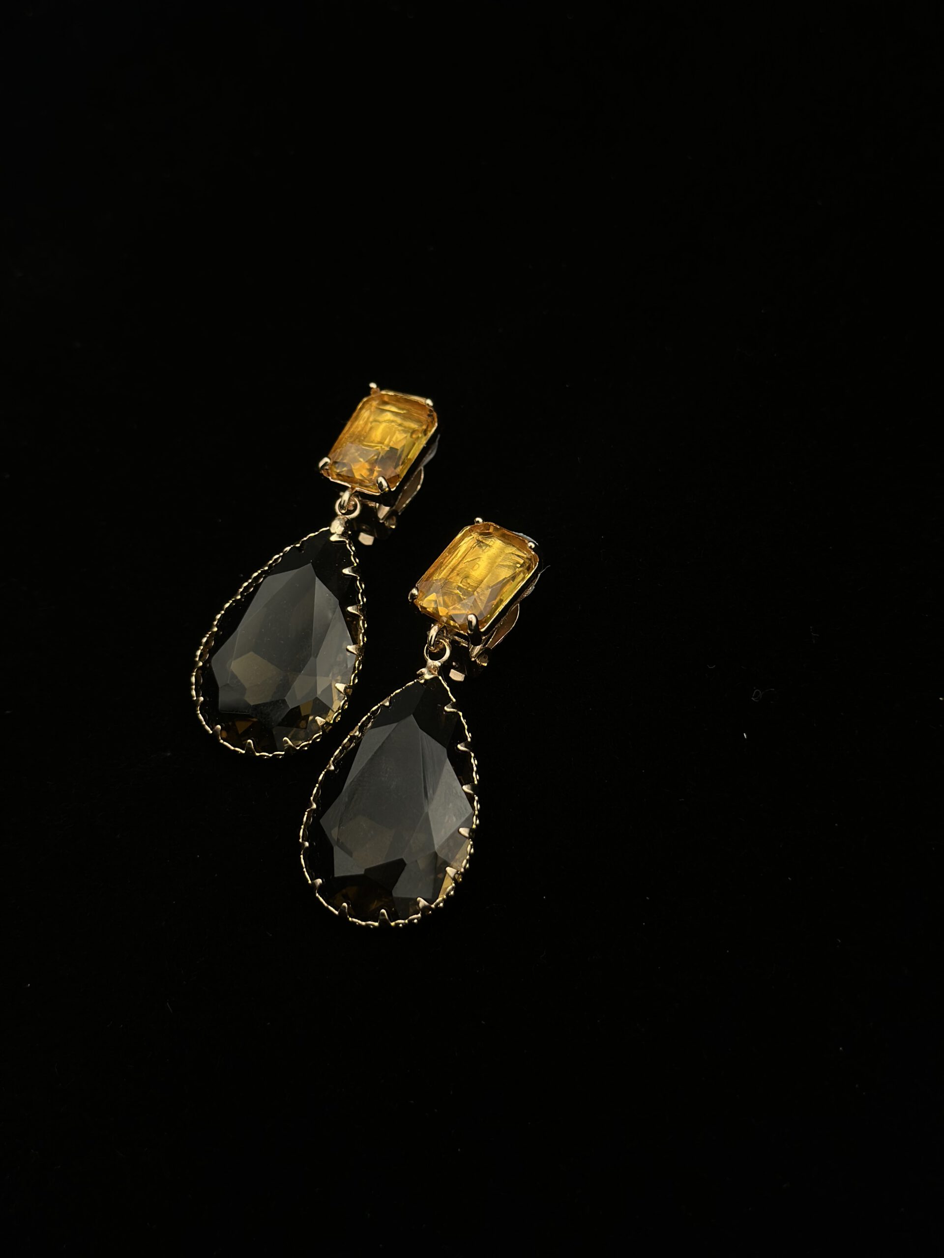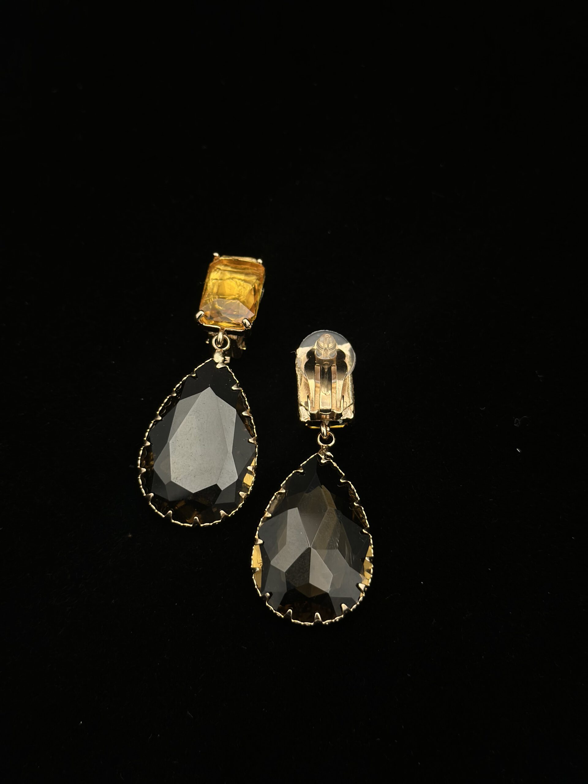 Diese eleganten tropfenförmigen Ohrclips überzeugen durch ihr edles und zeitloses Design. Die Schmuckstücke sind mit zwei harmonisch abgestimmten Steinen gestaltet: oben ein gelber Stein, der für einen warmen, strahlenden Akzent sorgt, und darunter ein dunklerer Stein, der dem Design Tiefe und Kontrast verleiht. Die elegante Tropfenform unterstreicht die stilvolle Wirkung und macht die Ohrclips zu einem geschmackvollen Accessoire für besondere Anlässe oder elegante Alltagslooks.
