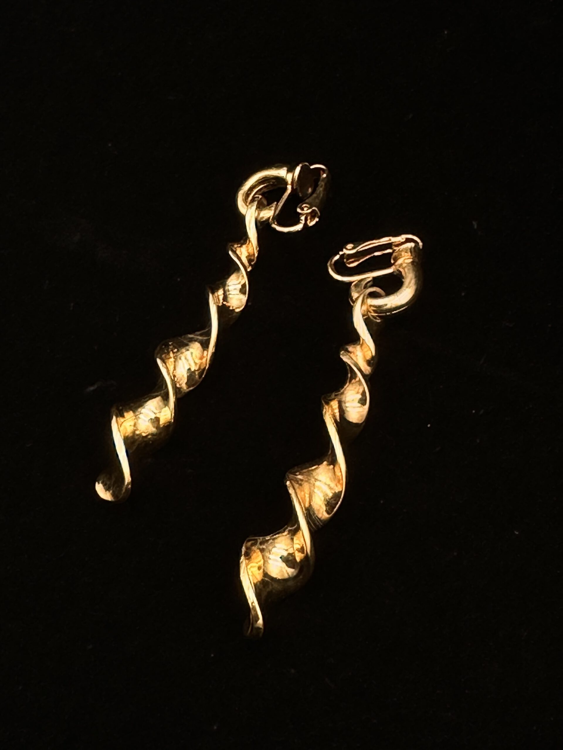 Diese eleganten, goldfarbenen Spiralen-Ohrringe im Vintage-Stil überzeugen durch ihr geschwungenes Design und ihren zeitlosen Retro-Charme. Leicht und angenehm zu tragen, sind sie ein stilvoller Hingucker für Alltag und besondere Anlässe.