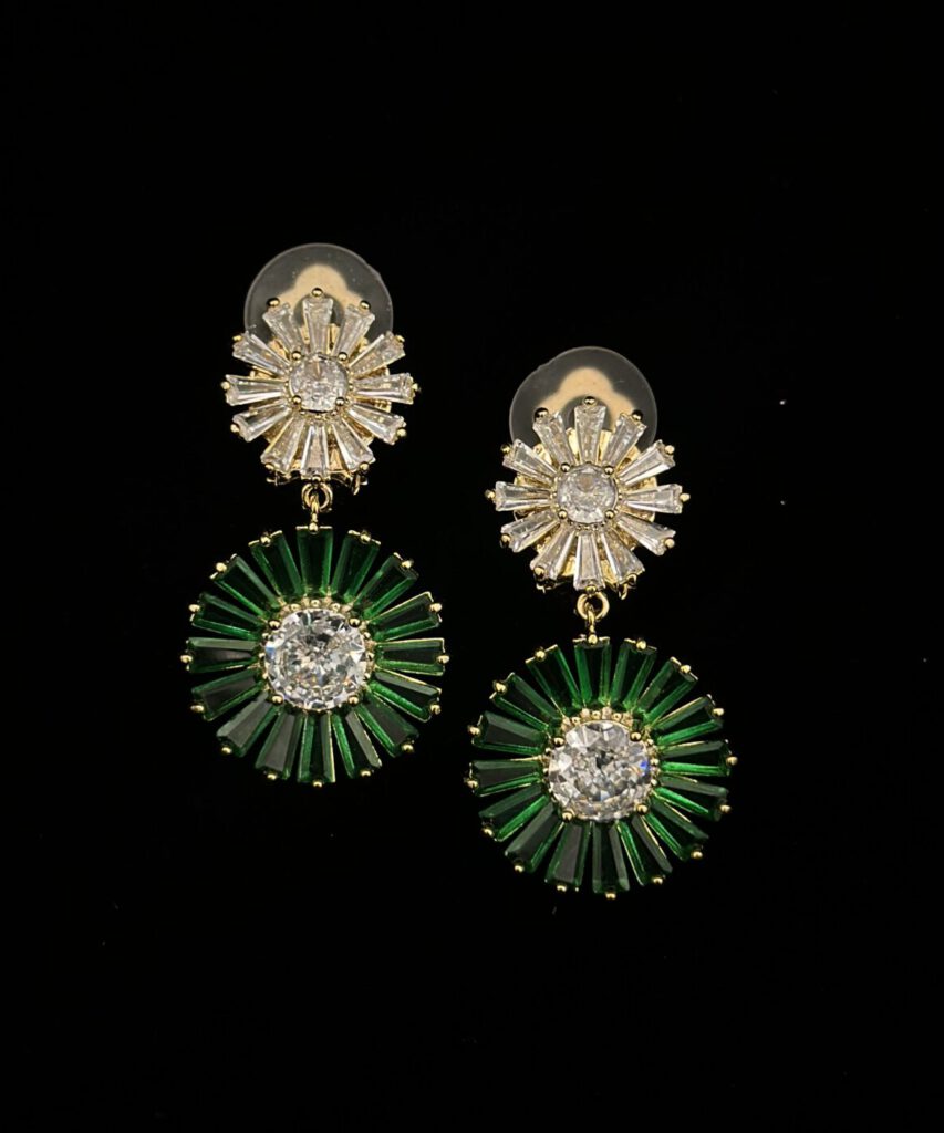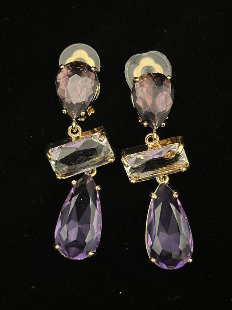Diese funkelnden violetten Ohrclips überzeugen durch ihr elegantes Design und ihre strahlende Farbwirkung. Die Ohrclips bestehen aus drei kunstvoll angeordneten Steinen in unterschiedlichen Tönen, die gemeinsam ein harmonisches und edles Gesamtbild ergeben. Durch ihre facettenreiche Gestaltung setzen sie stilvolle, glamouröse Akzente und eignen sich perfekt als Highlight für besondere Anlässe oder als edles Detail im […]