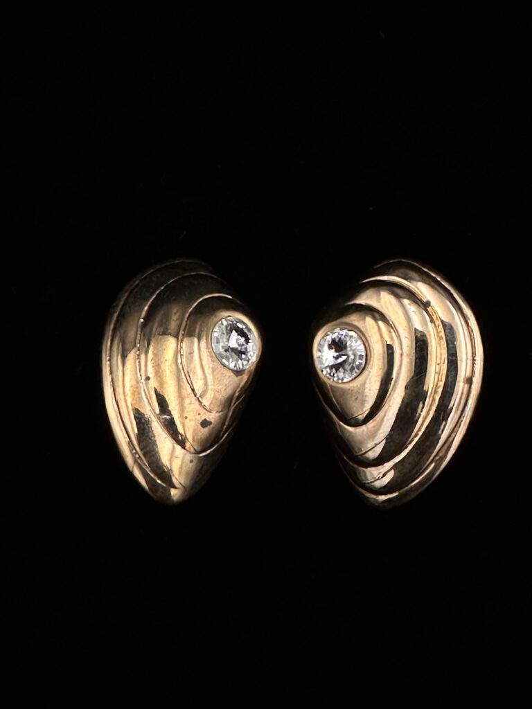 Diese schönen Vintage Ohrclips in dekorativer Muschelform bestechen durch ihre goldfarbene Oberfläche und einen eingesetzten Stein. Sie verleihen jedem Look einen besonderen, zeitlosen Charme. Mit Clip-Verschluss – auch ohne Ohrlöcher tragbar, ideal für Alltag oder besondere Anlässe.