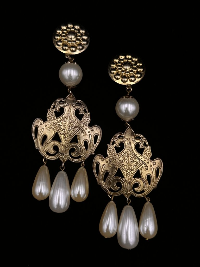 Diese schönen Vintage Ohrclips mit hängenden Perlen überzeugen durch ihre goldfarbenen Elemente und das klassische Design. Die schwingenden Perlen verleihen ihnen einen besonderen, zeitlosen Charme. Mit Clip-Verschluss – auch ohne Ohrlöcher tragbar, ideal für Alltag oder besondere Anlässe.