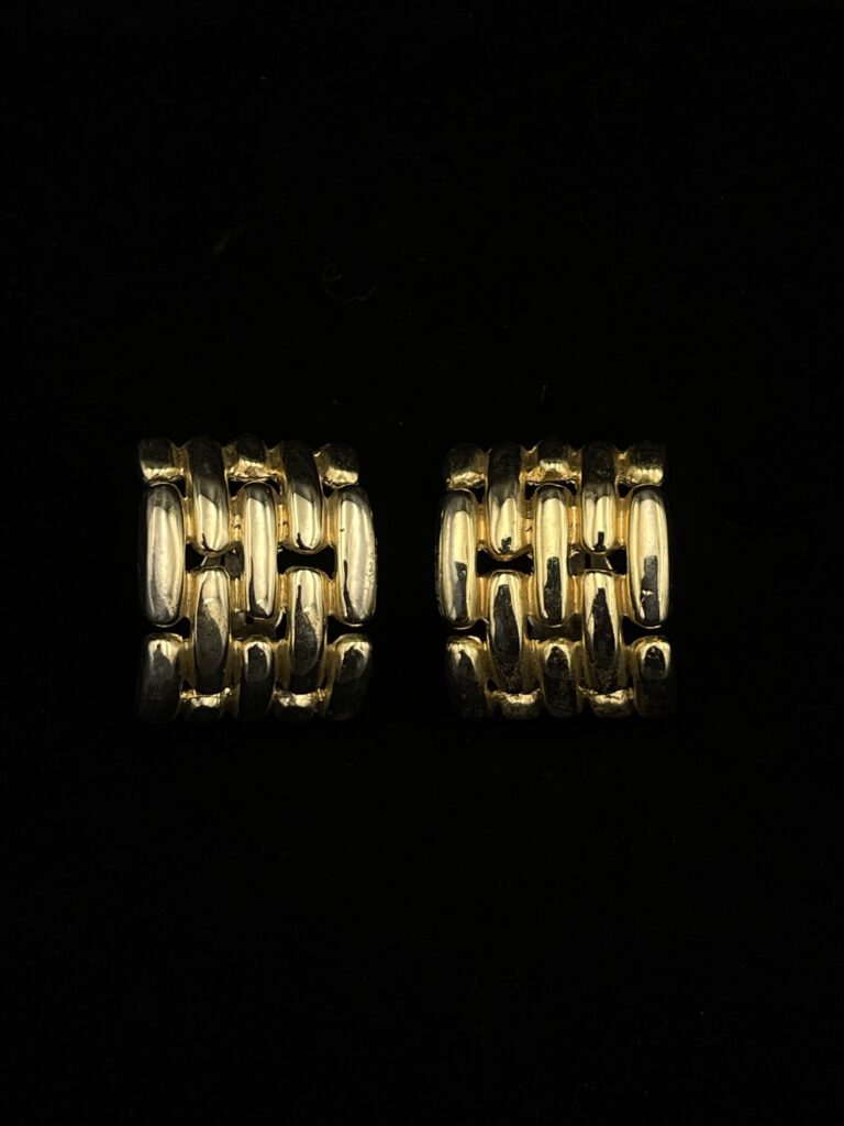 Diese stilvollen Vintage-Ohrclips in Goldoptik überzeugen durch ihr markantes, strukturiertes Gliederdesign. Die glänzende Oberfläche verleiht ihnen eine elegante Ausstrahlung und macht sie zu einem besonderen Blickfang. Ein zeitloses Accessoire, das jedem Outfit eine edle und moderne Note verleiht.