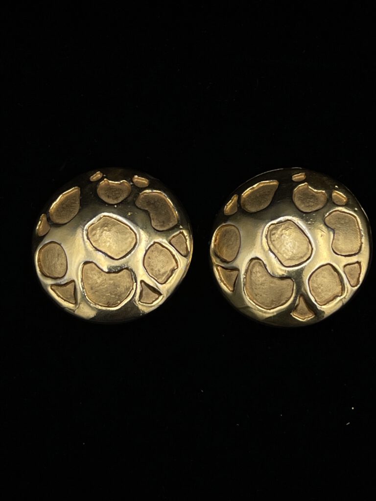 Diese eleganten Vintage-Ohrclips in Goldoptik überzeugen durch ihr besonderes, strukturiertes Design mit organischen Formen. Die hochwertige Verarbeitung verleiht ihnen eine edle Ausstrahlung und macht sie zu einem stilvollen Blickfang. Ein ausdrucksstarkes Accessoire, das jedem Outfit eine elegante Note verleiht.
