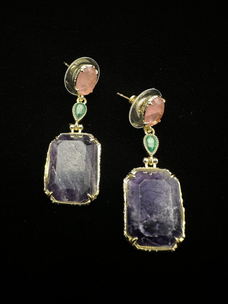 Diese eleganten Ohrringe vereinen Grau, Grün, Braun und Lila zu einem harmonischen Ensemble. Das sanfte Farbspiel und das filigrane Design verleihen jedem Look eine zurückhaltend elegante, feminine Note – perfekt für Liebhaber:innen subtiler Farbakzente.