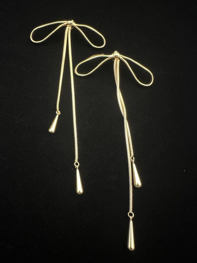 Diese eleganten Ohrringe vereinen Leichtigkeit und Ausdruck: Feine Statementschleifen formen den Mittelpunkt des Designs, während ihre schmalen Enden bei jeder Bewegung sanft mitschwingen. Ein feminines, verspieltes Accessoire, das jedem Look eine natürliche und zugleich stilvolle Note verleiht – perfekt für den grünen Salon und alle, die subtile Eleganz lieben.