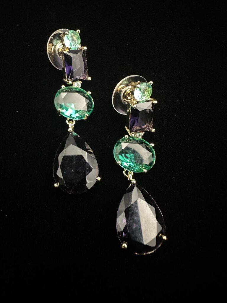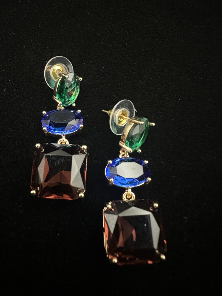 Diese stilvollen Ohrringe vereinen drei unterschiedlich farbige Steine in Grün, Blau und Braun zu einem sanften, natürlichen Farbspiel. Die harmonische Anordnung verleiht dem Design Tiefe und Lebendigkeit, während die warmen und kühlen Töne jeden Look elegant ergänzen. Ein dezentes, aber besonderes Accessoire für alle, die Farbakzente lieben.