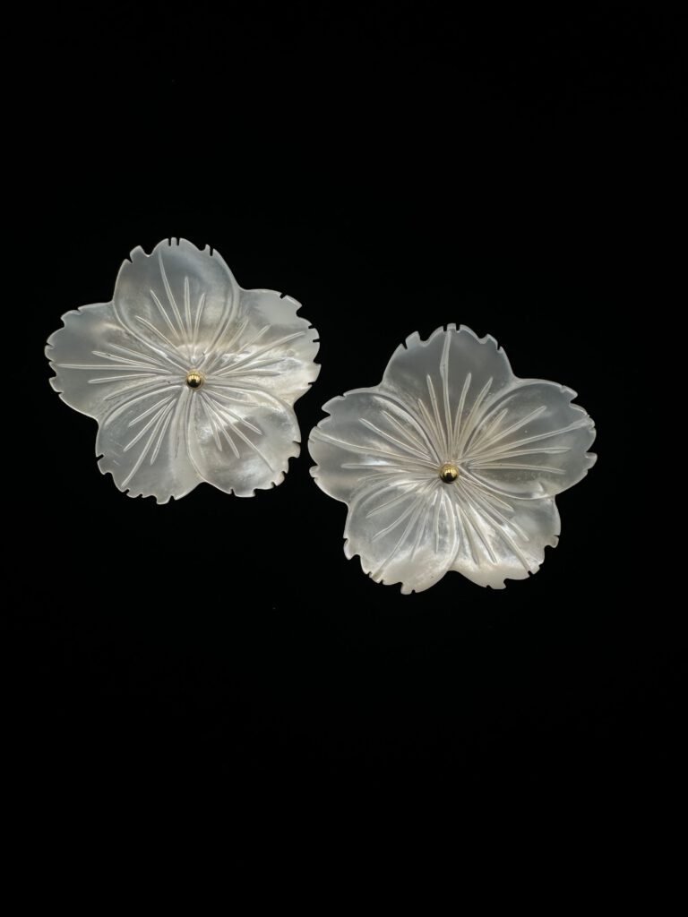 Diese eleganten Ohrringe zeigen eine kunstvoll gearbeitete Blüte aus schimmerndem Perlmutt, deren natürliche Struktur zartes Licht einfängt und sanft reflektiert. Der edle Glanz verleiht jedem Look eine feminine, zeitlose Ausstrahlung – ein stilvolles Highlight für alle, die schlichte Eleganz mit besonderem Detail lieben.