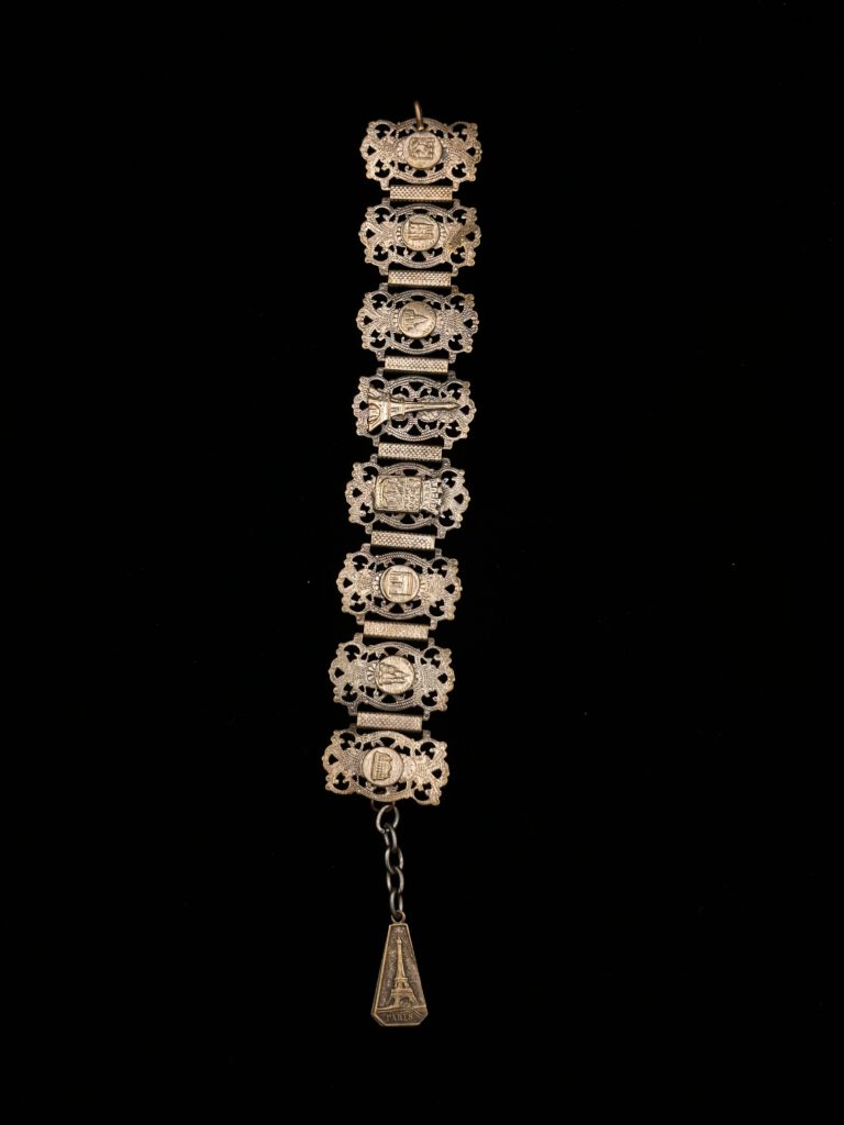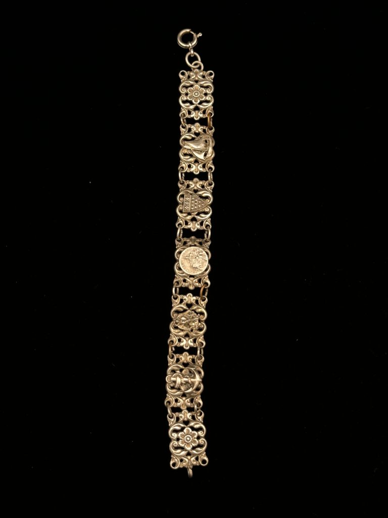 Vintage-Armband in edlem Silberton mit liebevollen Paris-Details. Feine Elemente, inspiriert von der romantischen Atmosphäre der französischen Hauptstadt, verleihen dem Schmuckstück einen charmanten und eleganten Charakter. Ein stilvolles Accessoire mit nostalgischem Flair, das jedem Outfit eine besondere, französische Note verleiht.