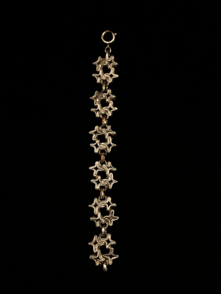Dieses detailreich gestaltete Vintage-Armband in edlem Silberton vereint zeitlose Eleganz mit kunstvoller Verarbeitung. Die fein ausgearbeiteten Ornamente verleihen dem Schmuckstück einen nostalgischen Charakter und erinnern an klassische Designs vergangener Epochen. Durch seine hochwertige Verarbeitung wirkt das Armband besonders robust und angenehm zu tragen.