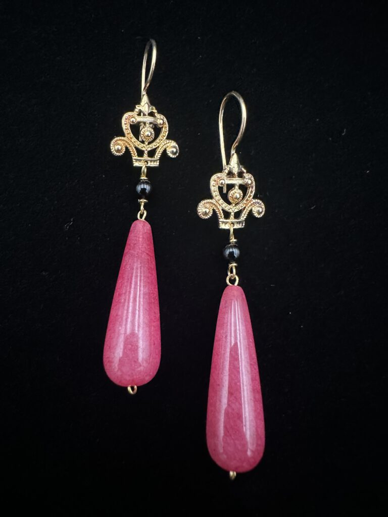 Diese eleganten, tropfenförmigen Ohrringe aus himbeerfarbenem, schimmerndem Kirschquarz setzen einen sanften, aber wirkungsvollen Farbakzent. Der filigran gearbeitete, vergoldete Stecker aus Silber 925 verleiht dem Design eine edle Leichtigkeit und rundet das feminine Gesamtbild stilvoll ab.