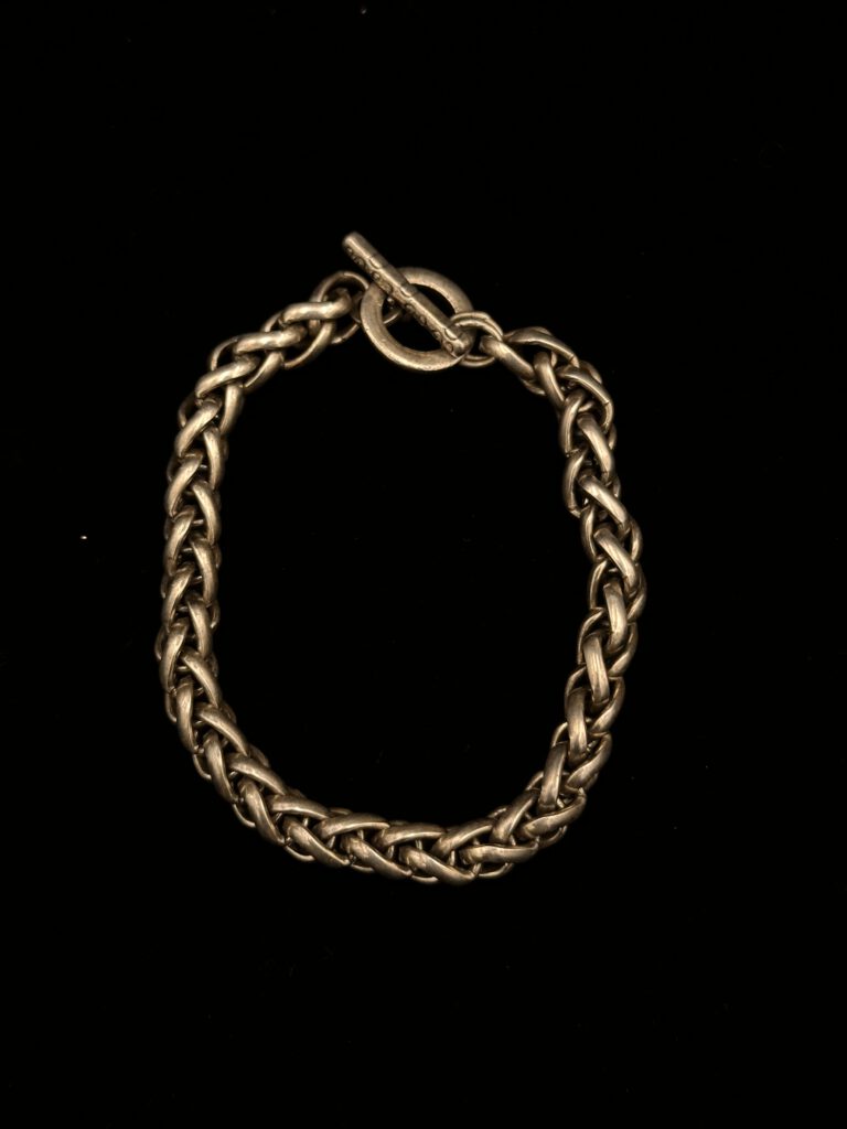 Dieses elegante Vintage-Armband überzeugt durch sein hochwertiges Flechtdesign und seine edle silberfarbene Ausstrahlung. Es lässt sich vielseitig kombinieren und verleiht jedem Outfit eine stilvolle Note. Ein zeitloses Schmuckstück, das Qualität und Geschmack perfekt vereint