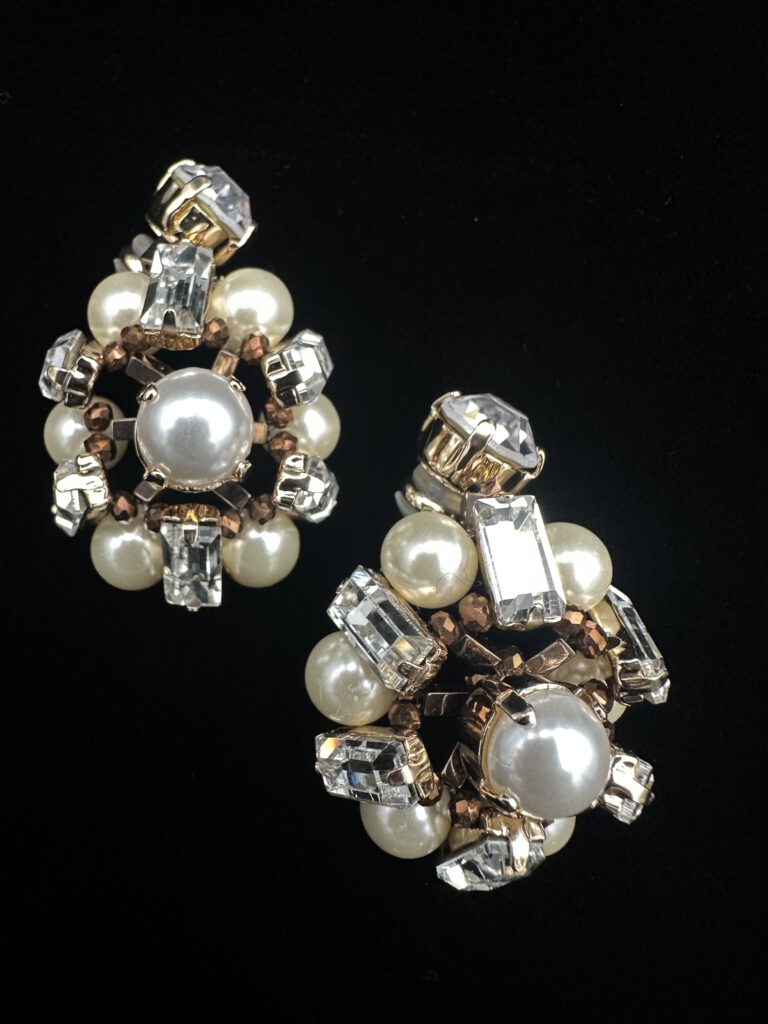 Diese wunderschönen Ohrringe vereinen silbrig funkelnde Strasssteine mit zart schimmernden Perlen zu einem eleganten Gesamtbild. Das cremige Farbspiel verleiht dem Design eine traumhaft weiche Ausstrahlung, die jedem Look eine edle, feminine Note schenkt.