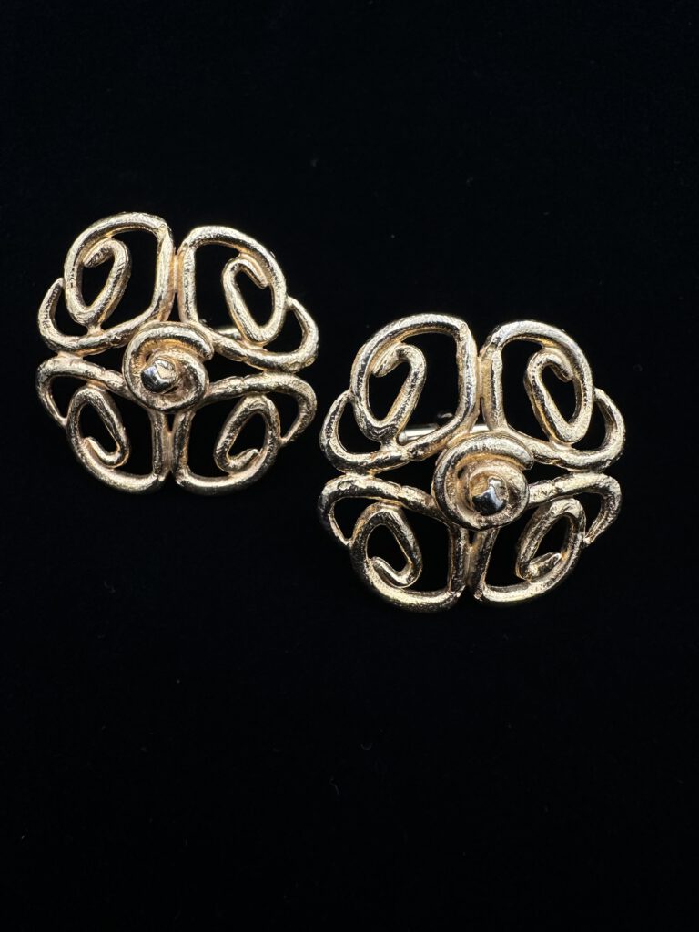 Diese markanten Vintage-Manschettenknöpfe überzeugen mit ihrem kunstvoll ausgearbeiteten Design und warm schimmerndem Goldton. Ausdrucksstark und elegant setzen sie ein stilvolles Statement – ideal für alle, die klassische Herrenschmuckstücke mit Charakter schätzen.